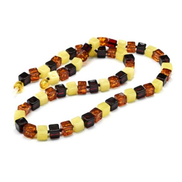 Бусы янтарые кубик 7мм цвет молочный, коньячный, вишня, 52см (иск.)