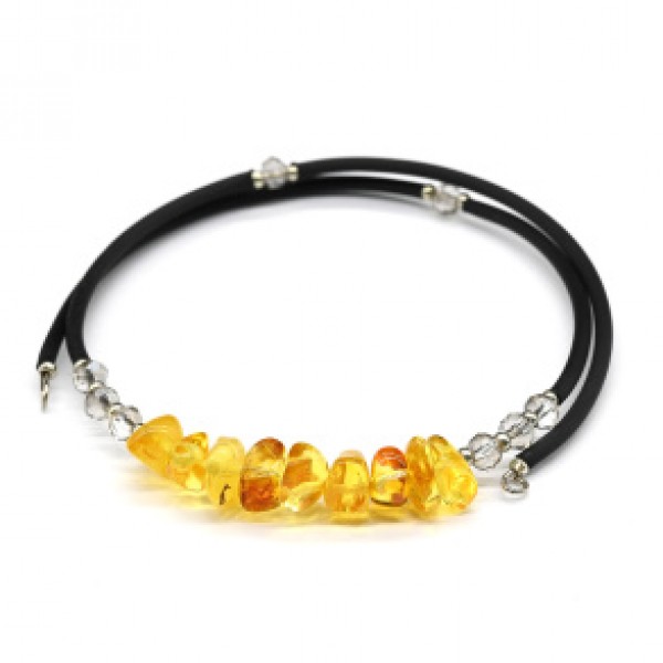 • Браслет с медовым янтарем и цирконами на пружинке, 17см