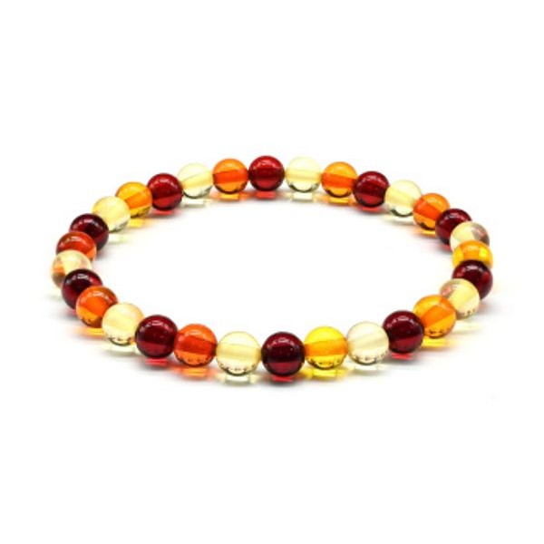 Браслет из янтаря шарик 6мм цвет лимонный, медовый, вишня, 17см (иск.)