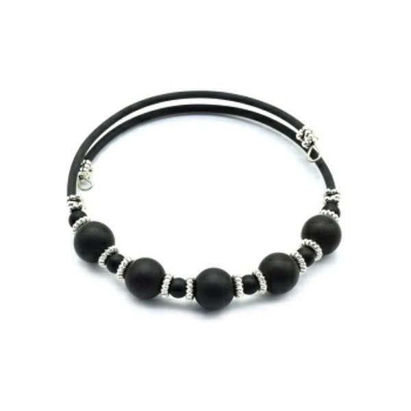 Браслет с янтарем на пружинке шарик 10мм цвет черный, 17см
