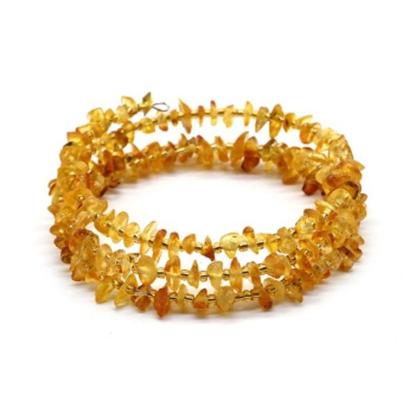 • Браслет из янтаря на пружинке 3 витка крошка цвет медовый, 17см