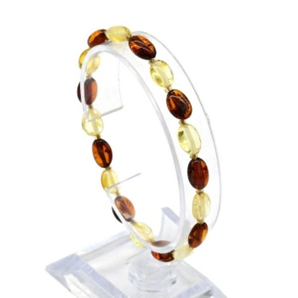 • Браслет янтарный с бисером галтовка 7*10мм цвет лимонный, коньячный, 17см