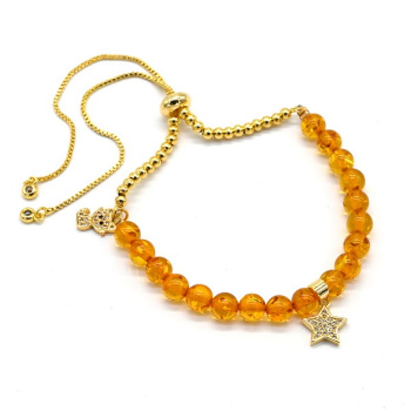 Браслет с шариками из янтаря 6мм цвет медовый, золотистый, 17см (иск.)