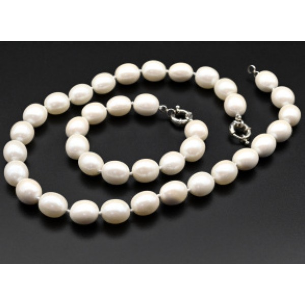 Комплект: бусы, браслет из майорки овал 13*15мм цвет белый, 47; 20см