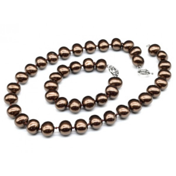 Комплект: бусы, браслет из майорки овал 15*13мм цвет шоколадный, 46; 20см
