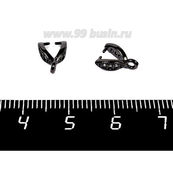 Держатель для кулона Премиум Лодочка с микроцирконами 10*3 мм черное родирование 1 штука