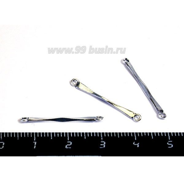 Коннектор ювелирный Палочка 5015 посеребрение 12 мк 2 петли 25*2 мм, производство Россия 1 штука