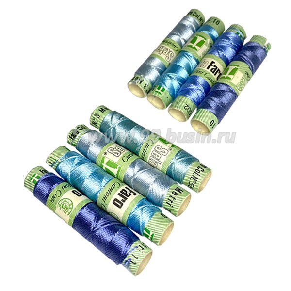 Микс нитей Seta Faro "Берлинская лазурь" 100% шёлк Италия 4 катушки по 10 метров, толщина №3