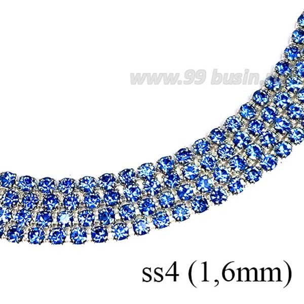 • Стразовая цепочка 1,6 мм (ss4) цвет голубой/серебристый 0,5 метра