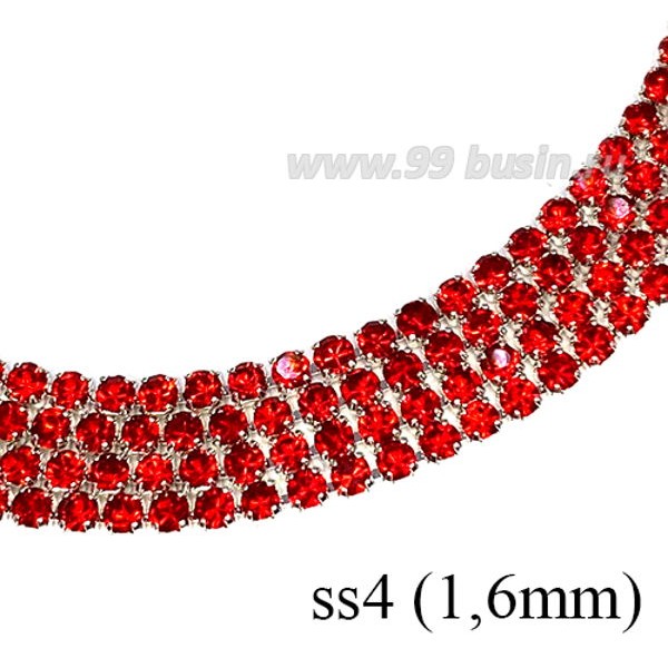 • Стразовая цепочка 1,6 мм (ss4) цвет красный/серебристый 0,5 метра