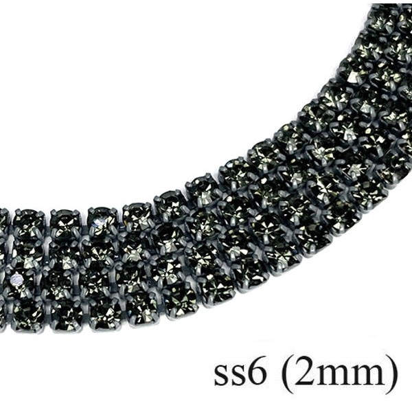 • Стразовая цепочка 2 мм (ss6) цвет графит (металл под цвет страз) Тайвань 0,5 метра