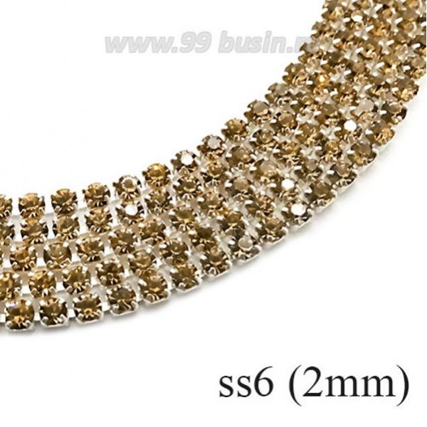• Стразовая цепочка 2 мм (ss6) цвет карамельный/серебристый Тайвань 0,5 метра