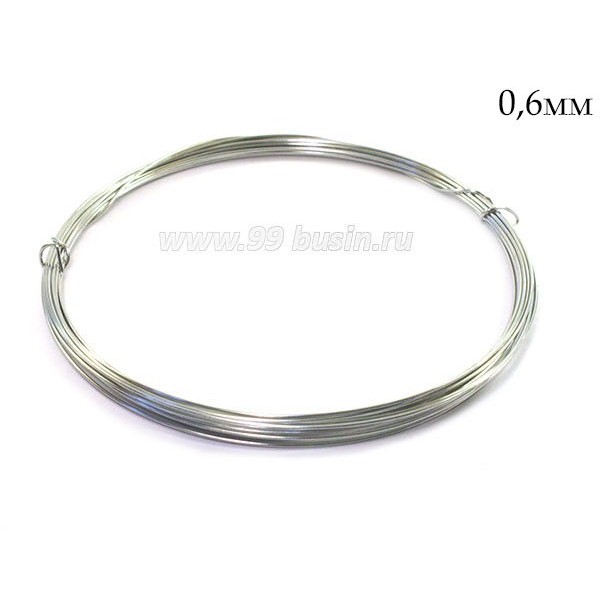 Проволока мягкая медная (аналог Rayher), покрытие под серебро, толщина 0,6 мм, упаковка около 8 метров