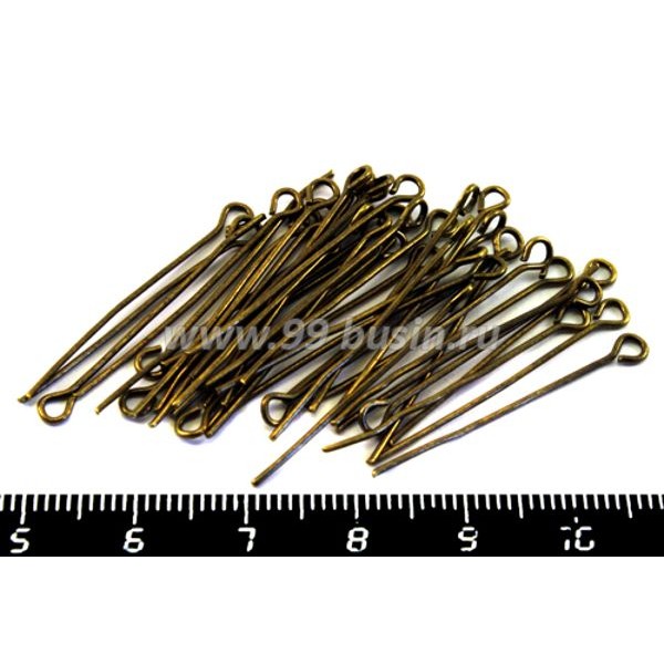 Пины с колечком 30*0,7 мм, цвет винтажная бронза 40 шт/уп