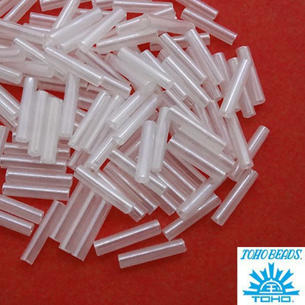 Стеклярус TOHO BUGLE 9 мм № 0141 полупрозрачный белый перламутр 5 граммов Япония