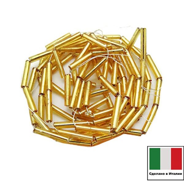 Стеклярус Винтажный 10 мм, гладкий, на нити, цвет золотистый огонек, 50 см/нить, Италия
