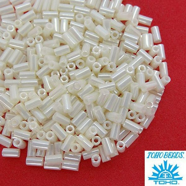 Стеклярус TOHO BUGLE 3 мм № 0122 айвори перламутр 5 граммов Япония