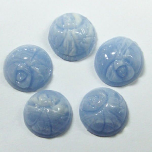 Кабошон, голубой агат с цветком (иск.), 12*12*5,5мм.