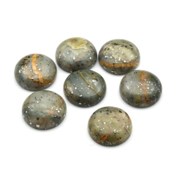 • Кабошон из офикальцита с пиритом круг 16*16*5мм