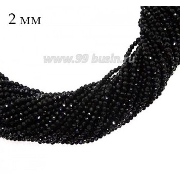 • Бусины хрустальные граненые на нити 2 мм, цвет черный, около 35 см нить/165 бусин