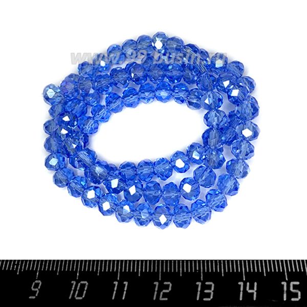 Бусина хрустальная на нити 6*4 мм, цвет светло-синий/перламутр около 90 штук/нить