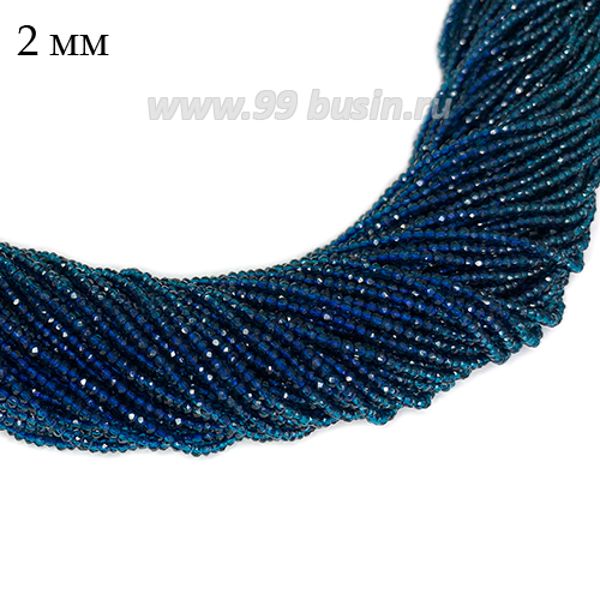 Бусины хрустальные граненые на нити 2 мм, цвет сине-зелёный, около 35 см нить/165 бусин