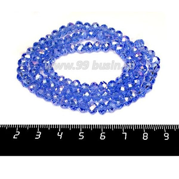 Бусина хрустальная на нити 6*4 мм, цвет светло-синий/бензин около 90 штук/нить