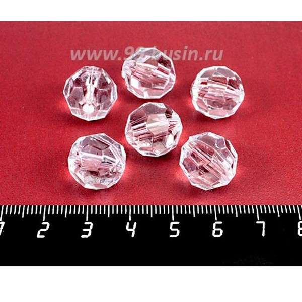 Бусины акрил Круглые граненые 14 мм, цвет бесцветный прозрачный 6 штук/упаковка