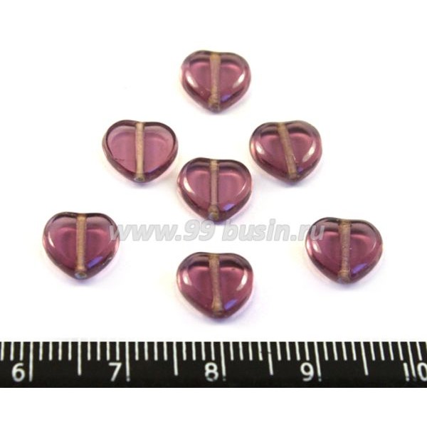 Бусина стеклянная Сердечко 8 мм цвет "аметист", плоское прозрачное, 7 шт/упак ЧЕХИЯ