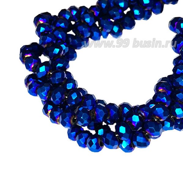 Бусины хрустальные Рондель 3,7*3 мм цвет синий электрик, 36 см нить/около 125 бусин