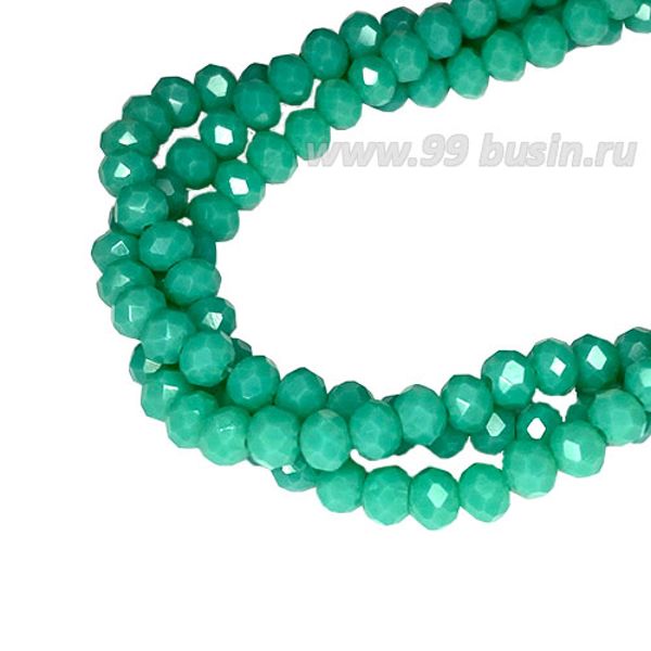 Бусины хрустальные Рондель 3,7*3 мм цвет зеленый морской непрозрачный, 36 см нить/около 125 бусин