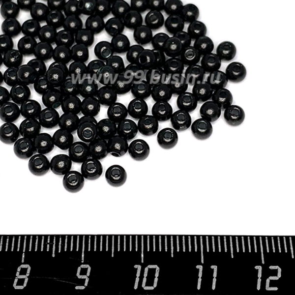 Бусины пластик 4 мм, цвет черный глянец, 18 гр/упаковка
