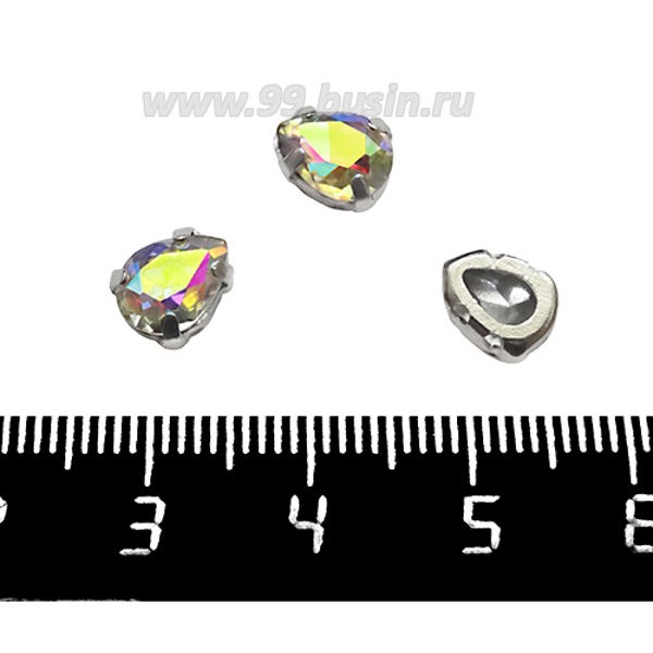 Стразы стеклянные пришивные в цапах Капелька 8*6 мм радужный АВ, 1 штука