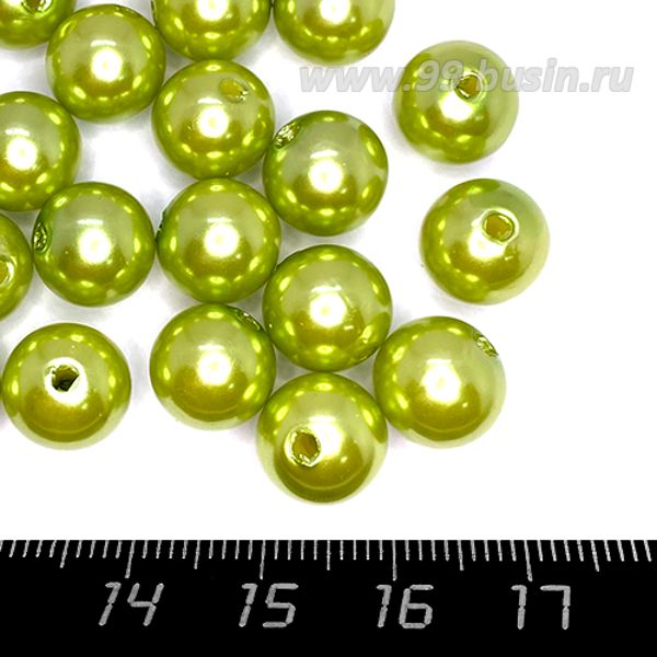 Бусины пластик 10 мм, цвет Жемчужный Светлый Хаки 18 гр/ок 35 штук/упаковка