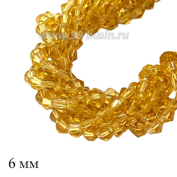 Бусины хрустальные биконус 6 мм светло-медовый нить ок. 29 см/49 штук