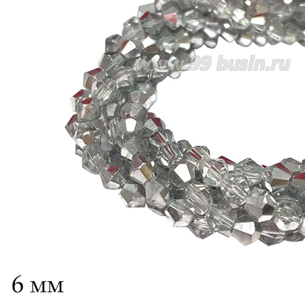 Бусины хрустальные биконус 6 мм прозрачный/серебристый, нить ок. 26 см/46 штук