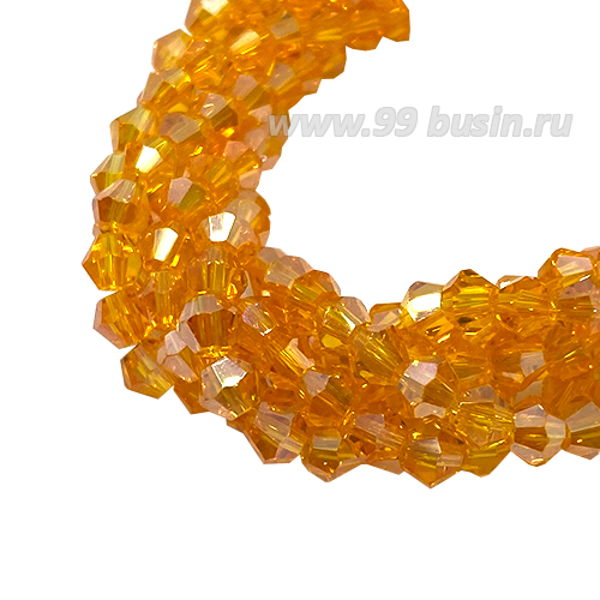 Бусина хрустальная биконус 3,5 мм оранжевый/перламутр длина нити около 41 см/135 штук