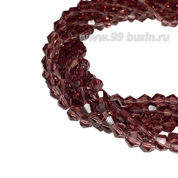 Бусина хрустальная биконус 3,5 мм темный аметист длина нити около 42 см/130 штук