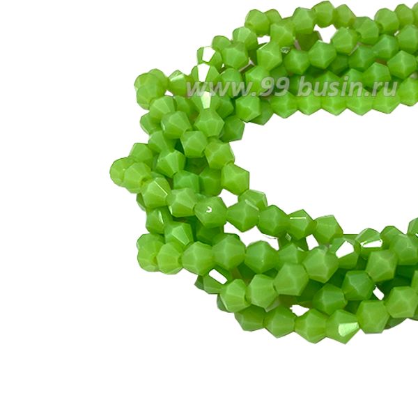 Бусина хрустальная биконус 4 мм непрозрачный зелёный авокадо, длина нити около 41 см/110 штук