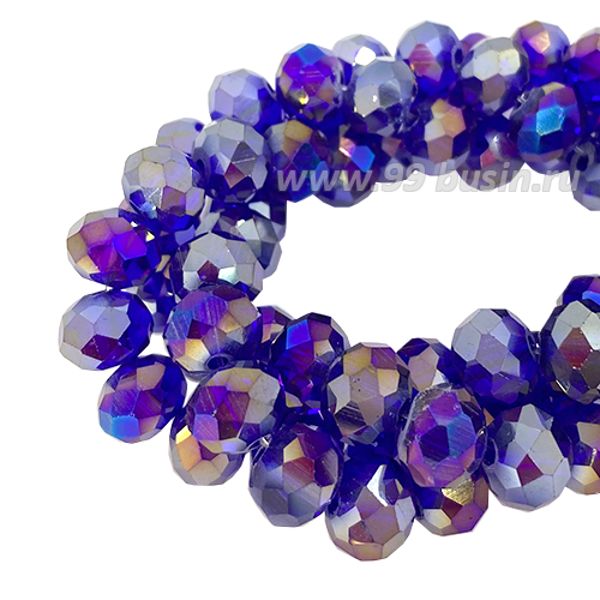 Бусина хрустальная Рондель 8*6 мм индиго/бензин около 40 см/нить