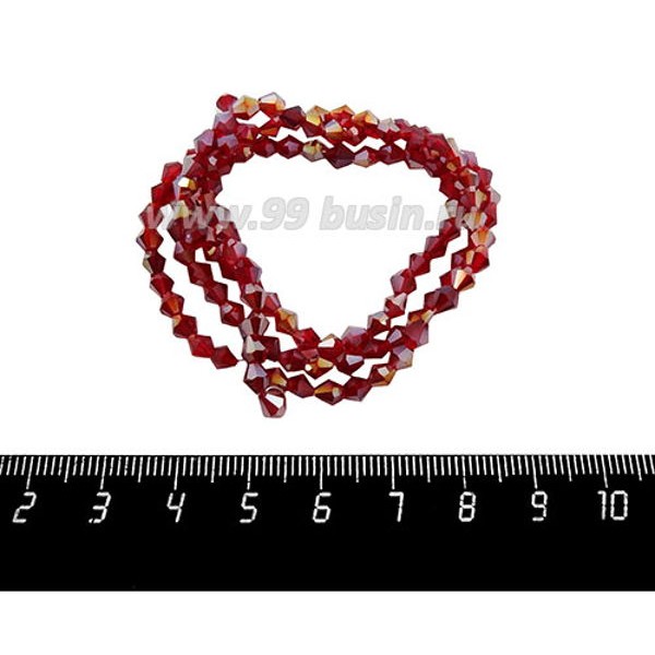 Бусина стеклянная хрустальная биконус 4 мм, рубиновый/бензин, длина нити около 45 см