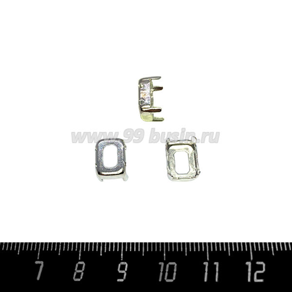 Оправа для страз латунная Прямоугольник 10*8 мм, цвет Никель, 1 штука