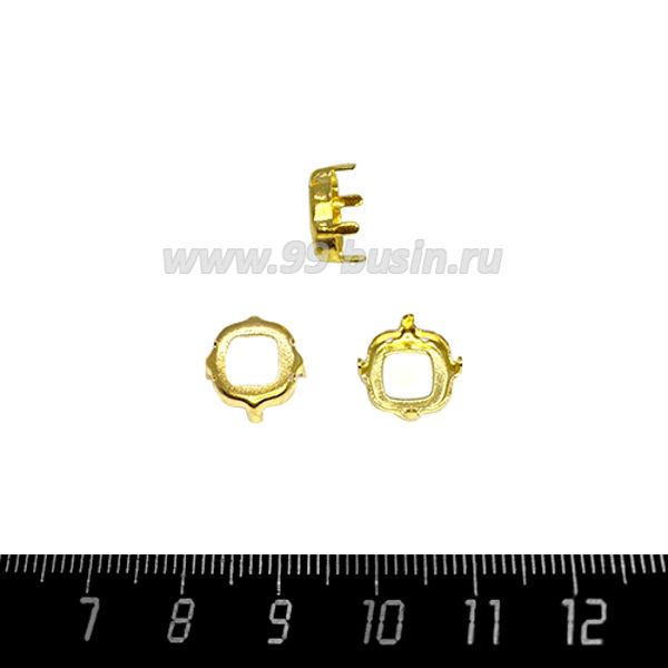 Оправа для страз латунная Квадрат 10*10 мм, цвет Золото, 1 штука