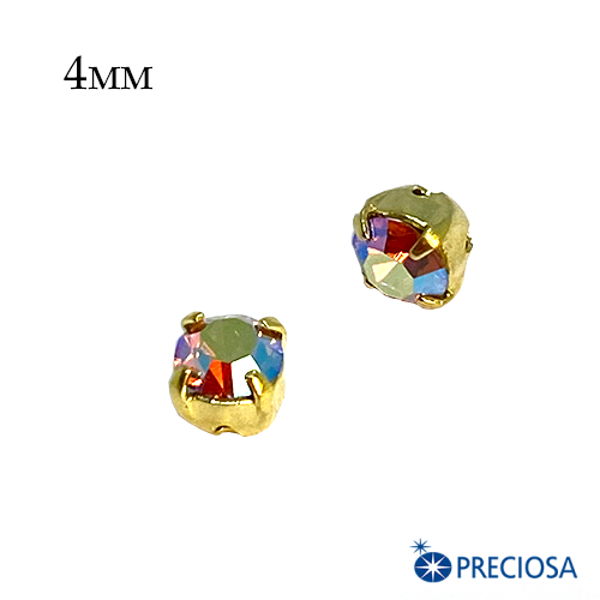 Шатоны PRECIOSA пришивные хрустальные, размер ss-16 (4 мм), цвет Light Rose AB/gold, 12 (!) штук/упаковка, Чехия