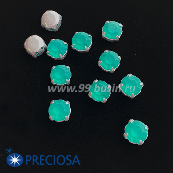 Шатоны (стразы) PRECIOSA MAXIMA пришивные хрустальные МАТОВЫЕ, размер ss-39 (8,4 мм), цвет Blue Zircon/оправа Silver 1штука, Чехия