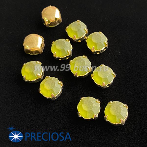 Шатоны (стразы) PRECIOSA MAXIMA пришивные хрустальные МАТОВЫЕ, размер ss-39 (8,4 мм), цвет Peridot/оправа Gold 1штука, Чехия