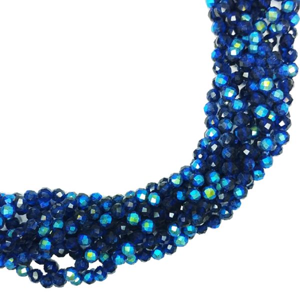 Бусины хрустальные граненые на нити 3 мм синяя лазурь AB нить ок. 35 см