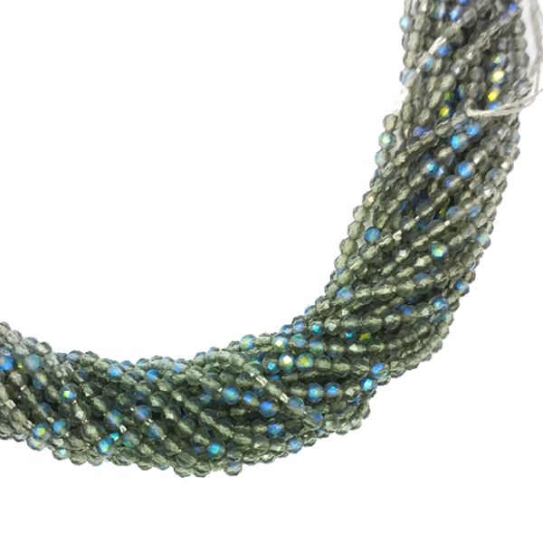 Бусины хрустальные граненые круглые 2 мм на нити, цвет дымчатый серый AB нить ок. 35 см/160 штук