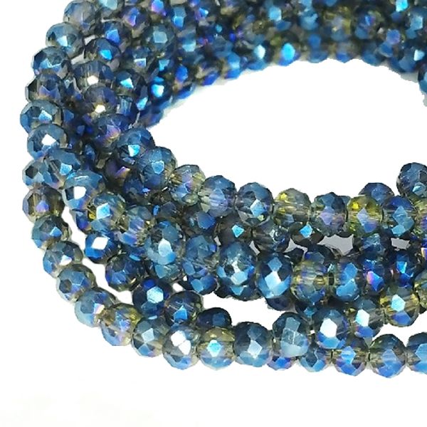 Бусины хрустальные Рондель 3,5*2,5 мм сине-серый электрик, около 40 см нить/около 175 бусин