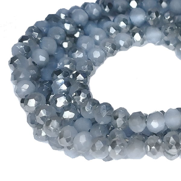 Бусины хрустальные Рондель 3*2 мм опаловый серый/графит, около 40 см нить/около 175 бусин